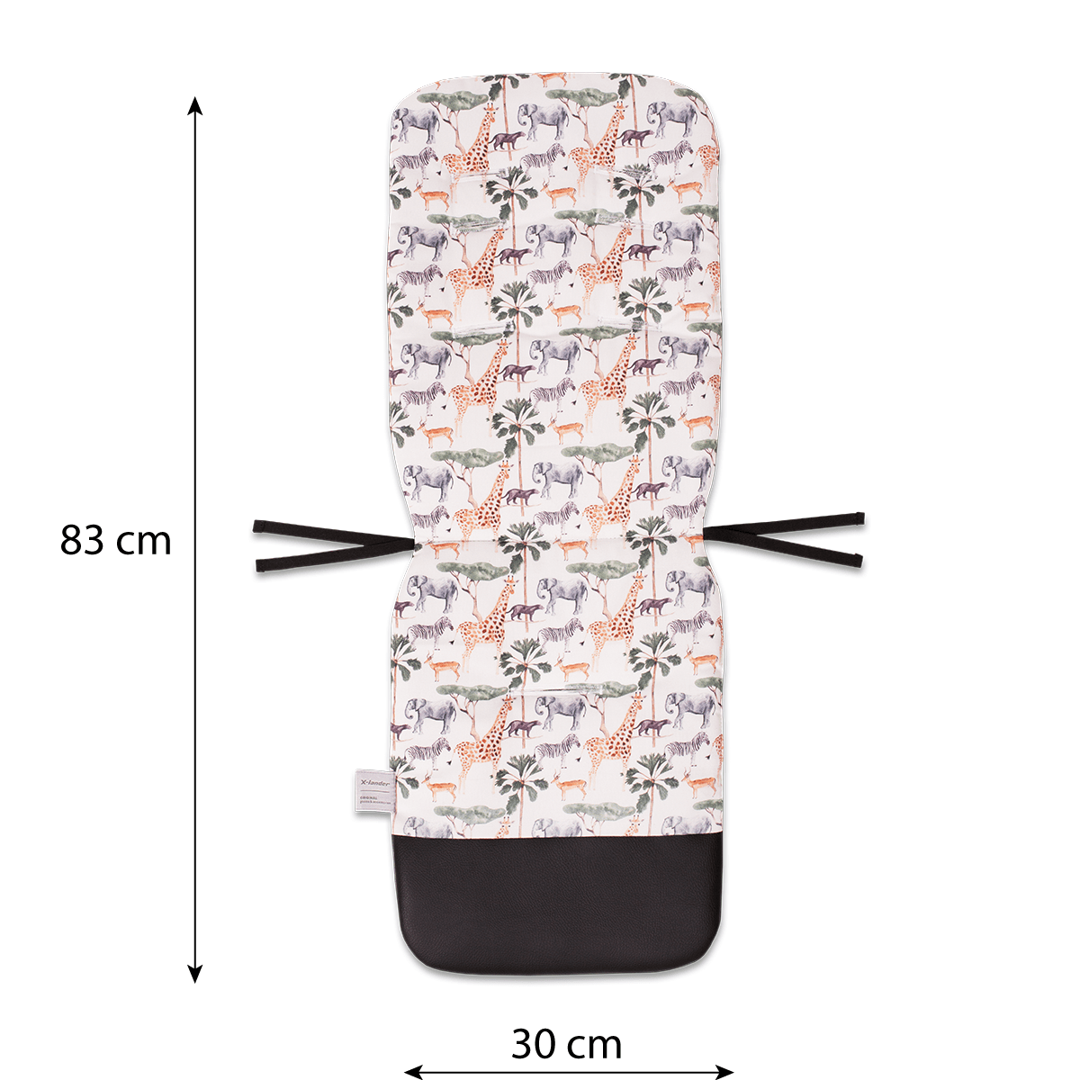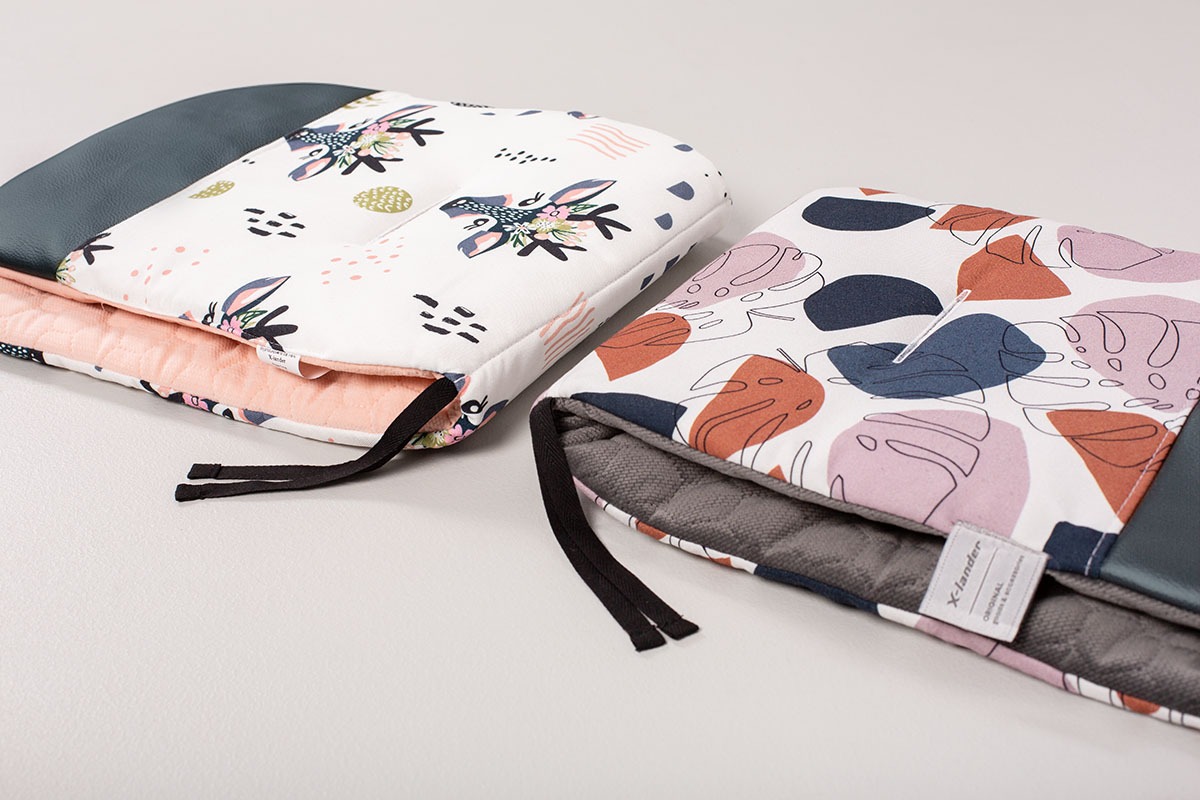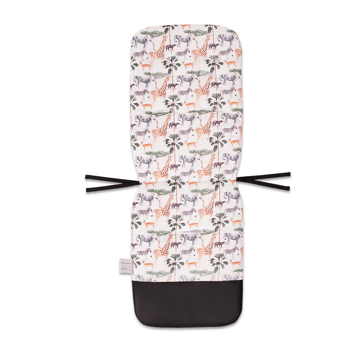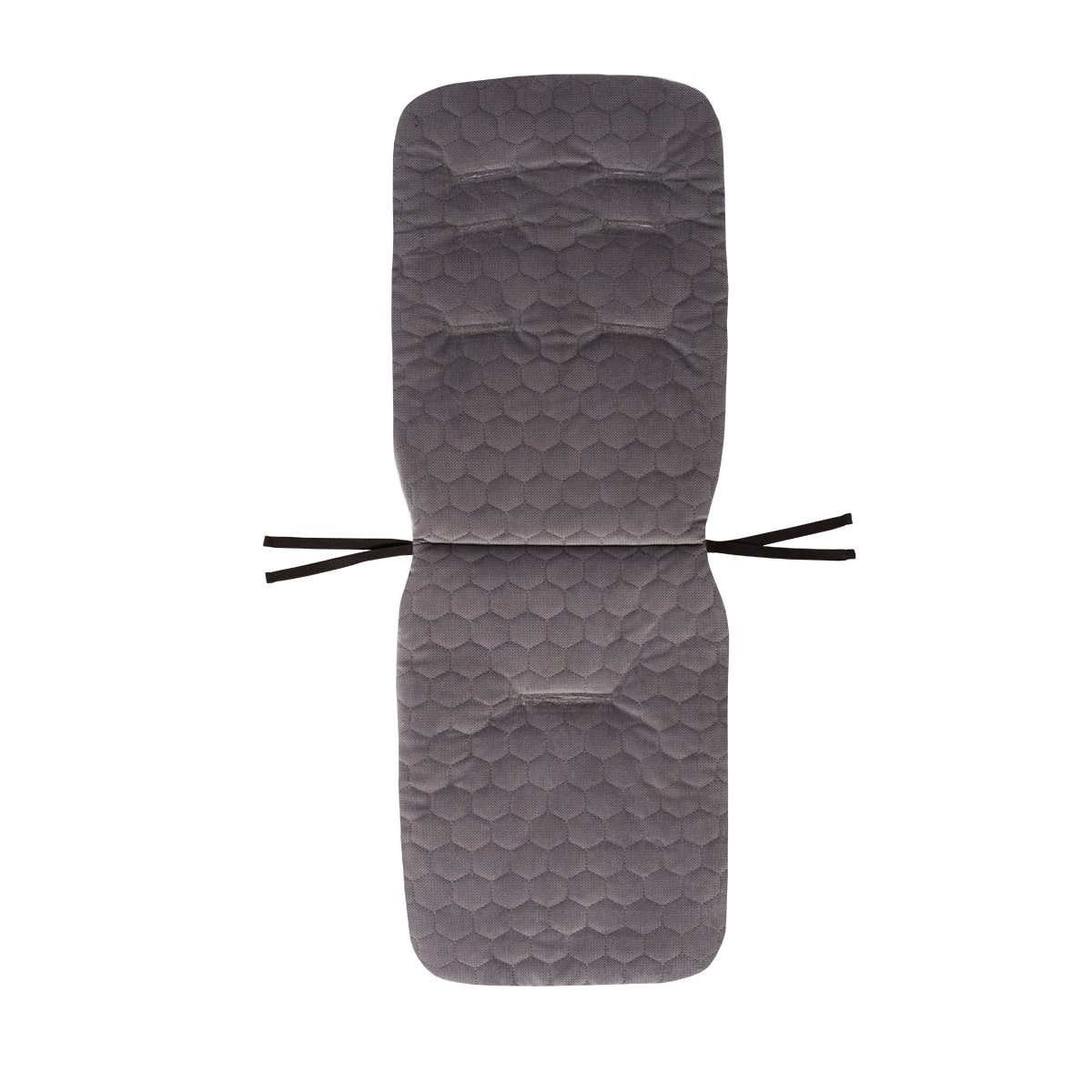 Bambusowa wkładka, z jednej strony wykonana jest ze 100% bambusowa naturalnej przędzy. Druga strona to miły w dotyku welur- Velvet. Obie tkaniny spełniają wymagającą normę OEKOTEX 100, która jest wymagana w wysokiej jakości produktach dla dzieci. W środku znajduje się miękkie, hipoalergiczne wypełnienie. Wkładka do wózka jest miękkim i niezwykle miłym w kontakcie ze skórą, zabezpieczeniem delikatnej skóry dziecka. Dodatkowo osłania tapicerkę wózka przed zabrudzeniem. Posiada łatwo ścieralny materiał w miejscu narażonym na zabrudzenia od bucików. 3 stopniowe otwory we wkładce, pozwalają na idealne przeprowadzenie przez nią pasów na każdej wysokości. Posiada dodatkowe troczki mocujące, utrzymujące wkładkę na miejscu, zapobiegając jej zsuwaniu czy skręcaniu.
