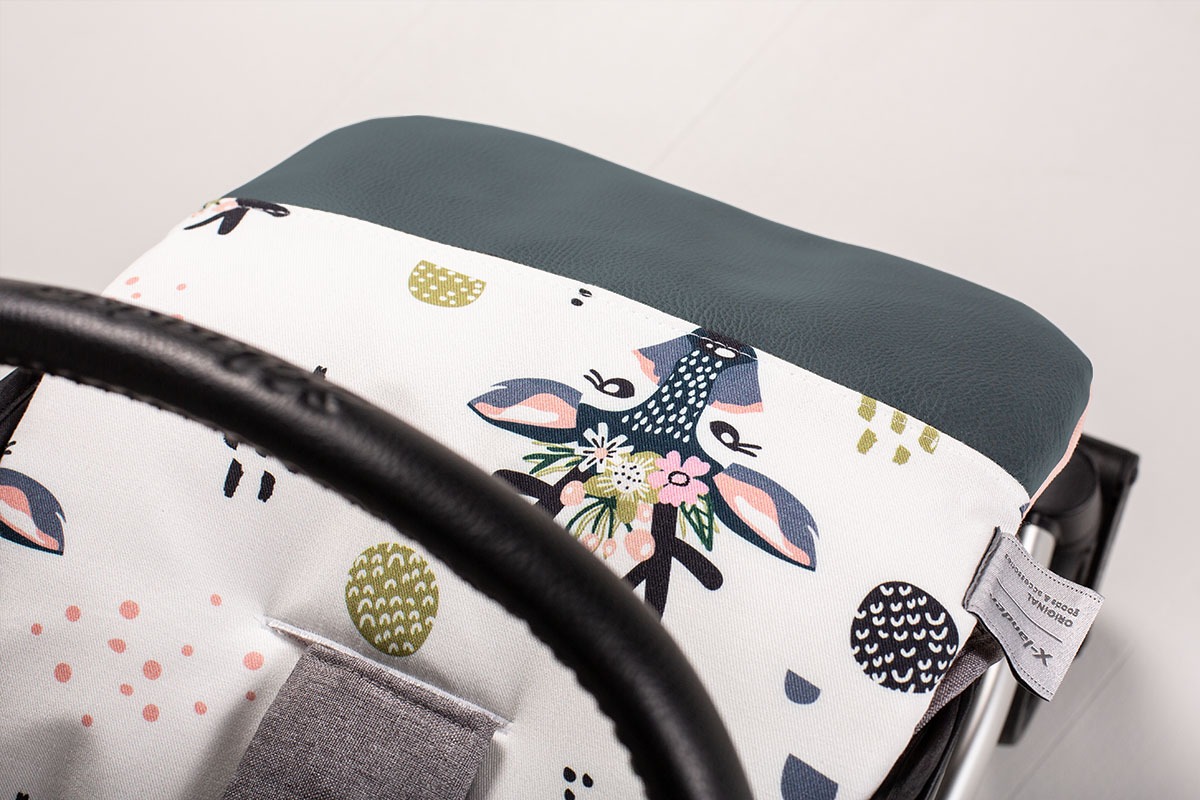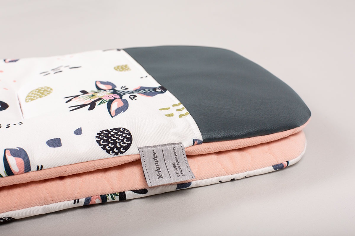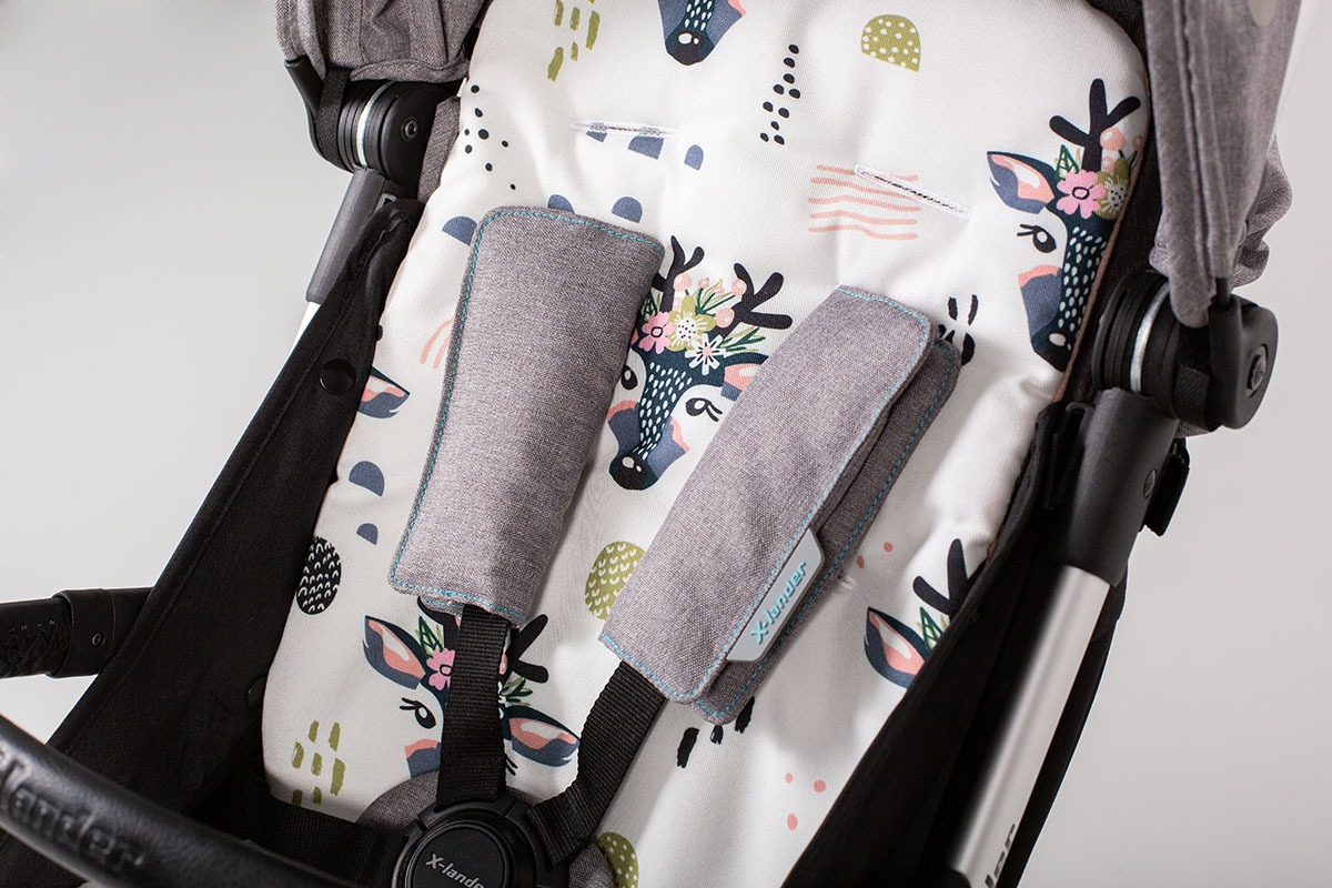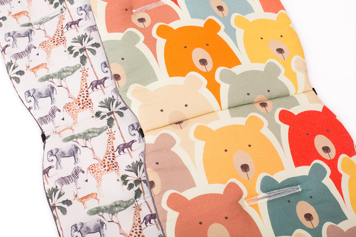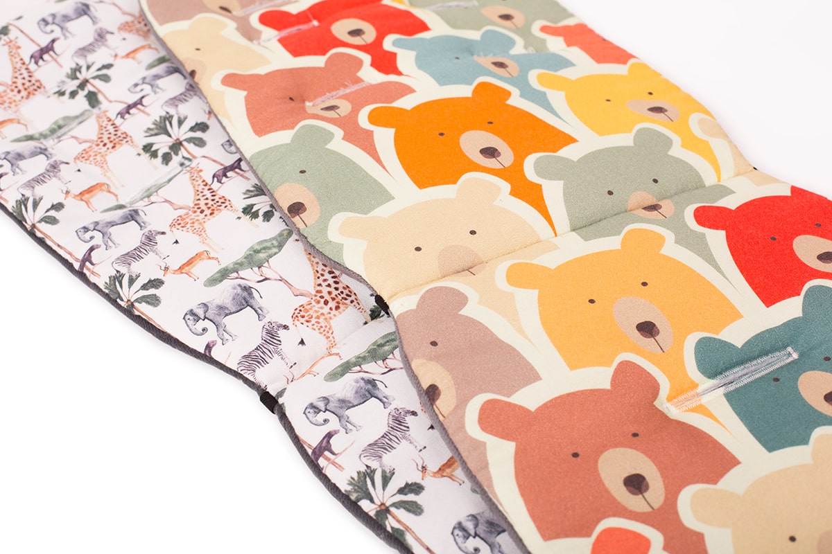 Bambusowa wkładka, z jednej strony wykonana jest ze 100% bambusowa naturalnej przędzy. Druga strona to miły w dotyku welur- Velvet. Obie tkaniny spełniają wymagającą normę OEKOTEX 100, która jest wymagana w wysokiej jakości produktach dla dzieci. W środku znajduje się miękkie, hipoalergiczne wypełnienie. Wkładka do wózka jest miękkim i niezwykle miłym w kontakcie ze skórą, zabezpieczeniem delikatnej skóry dziecka. Dodatkowo osłania tapicerkę wózka przed zabrudzeniem. Posiada łatwo ścieralny materiał w miejscu narażonym na zabrudzenia od bucików. 3 stopniowe otwory we wkładce, pozwalają na idealne przeprowadzenie przez nią pasów na każdej wysokości. Posiada dodatkowe troczki mocujące, utrzymujące wkładkę na miejscu, zapobiegając jej zsuwaniu czy skręcaniu.
