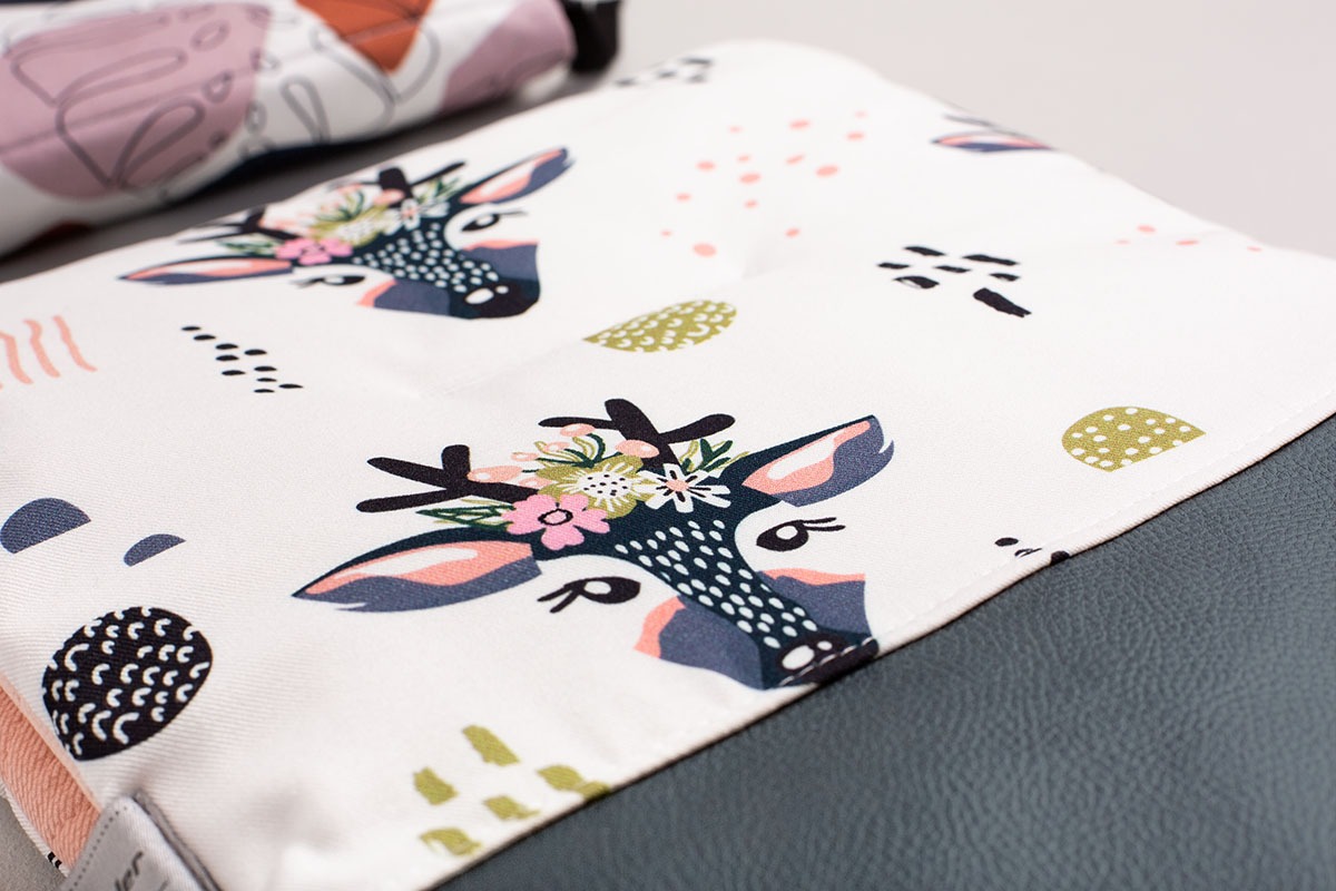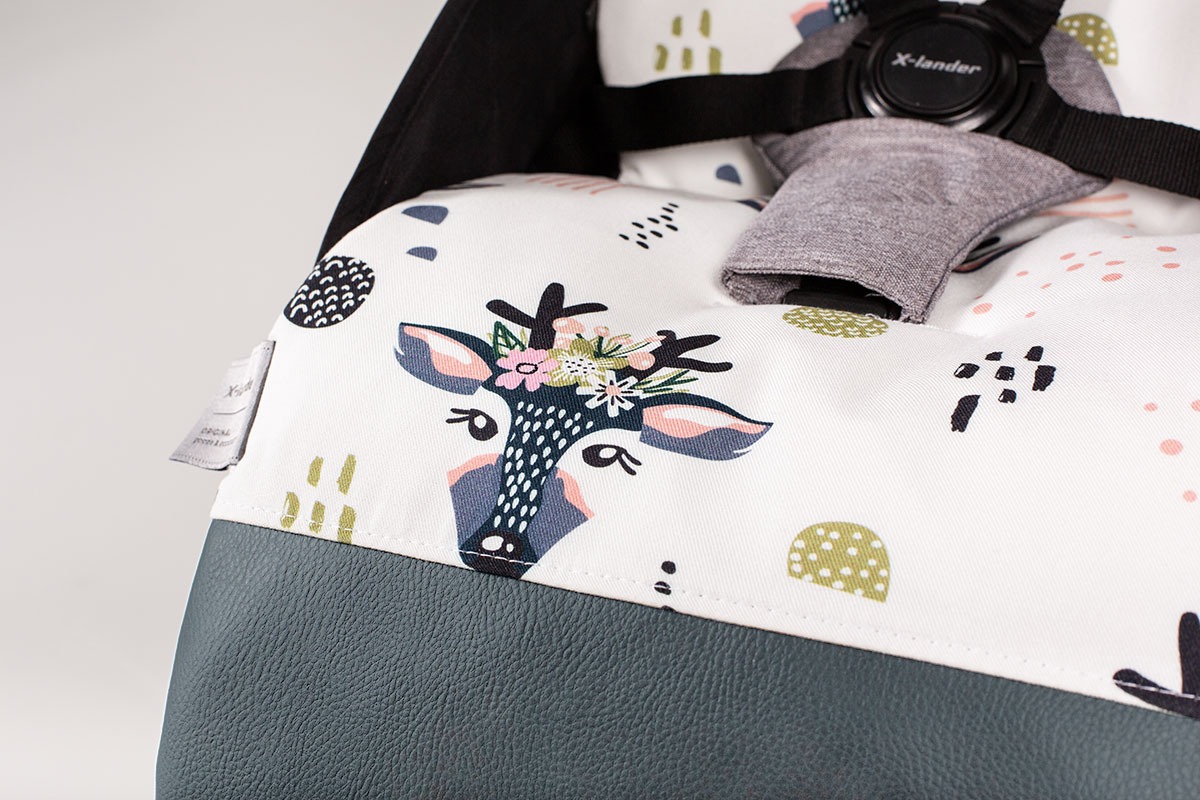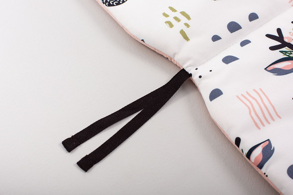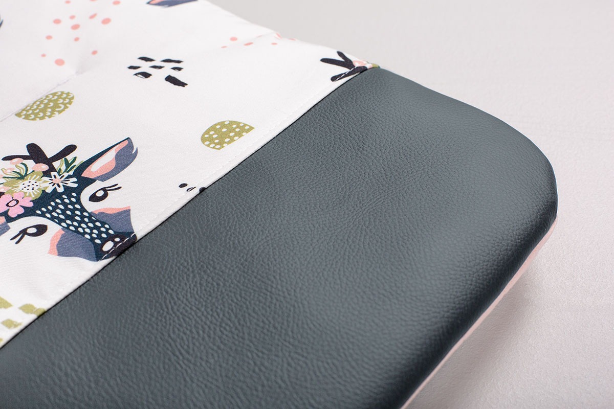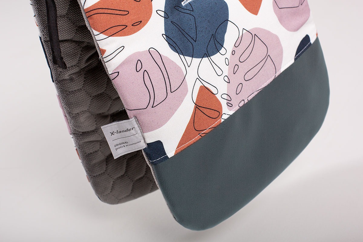 Bambusowa wkładka, z jednej strony wykonana jest ze 100% bambusowa naturalnej przędzy. Druga strona to miły w dotyku welur- Velvet. Obie tkaniny spełniają wymagającą normę OEKOTEX 100, która jest wymagana w wysokiej jakości produktach dla dzieci. W środku znajduje się miękkie, hipoalergiczne wypełnienie. Wkładka do wózka jest miękkim i niezwykle miłym w kontakcie ze skórą, zabezpieczeniem delikatnej skóry dziecka. Dodatkowo osłania tapicerkę wózka przed zabrudzeniem. Posiada łatwo ścieralny materiał w miejscu narażonym na zabrudzenia od bucików. 3 stopniowe otwory we wkładce, pozwalają na idealne przeprowadzenie przez nią pasów na każdej wysokości. Posiada dodatkowe troczki mocujące, utrzymujące wkładkę na miejscu, zapobiegając jej zsuwaniu czy skręcaniu.