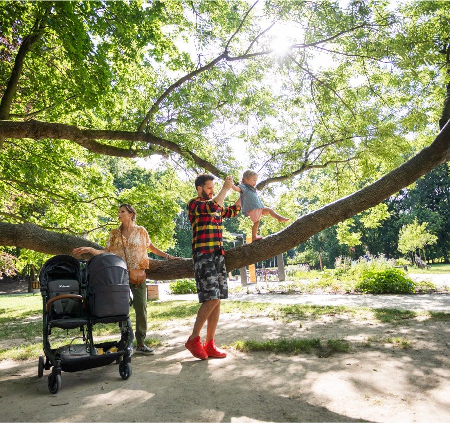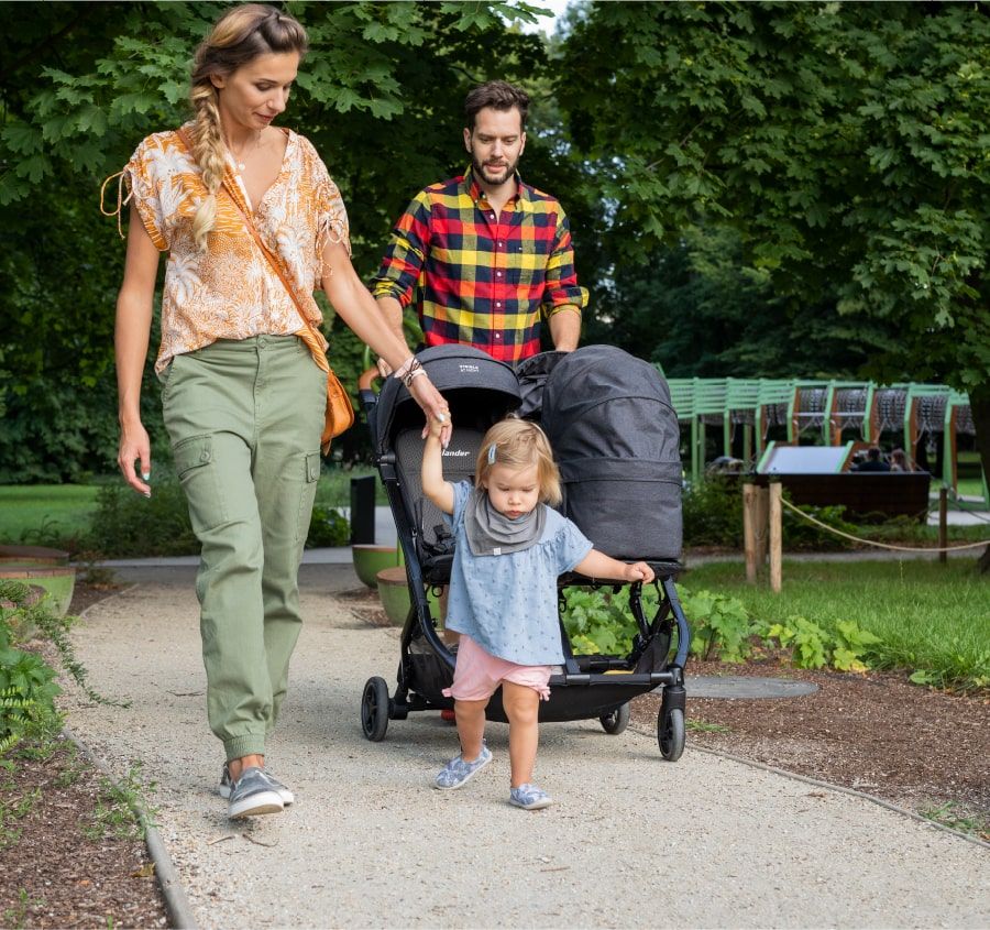 - Bardzo lekka – żadnych zbędnych kilogramów do dźwigania. Lekka konstrukcja gondoli pozwala na wpięcie dwóch gondol obok siebie wykorzystując całą szerokość ramy wózka. Dzięki niewielkiej wadze gondol, wóżek z podwójnym obciążeniem łatwo się prowadzi.