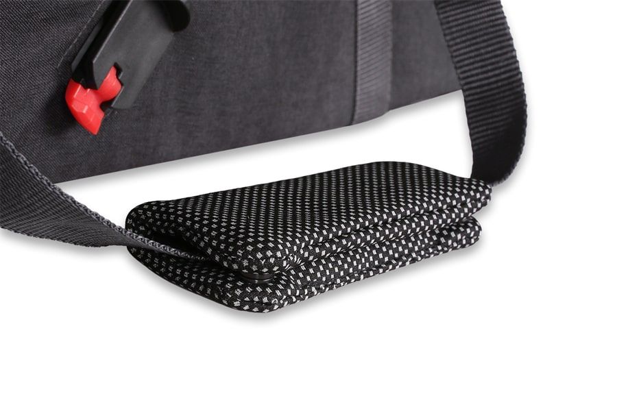 - Widoczne odblaski – wszyty wzdłuż całej długości budki odblask sprawia, że wózek z wpiętą gondolą jest widoczny z dużej odległości.