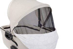 Precyzyjnie dopasowany, szczelny pokrowiec. Dzięki magnesom zarówno jego założenie, jak i demontaż nastąpią bezszelestnie. To szczególnie istotna funkcja, jeśli nie chcemy przerwać maluszkowi jego snu. Pokrowiec posiada również wygodny w użyciu wiatrołap, który umożliwi nam swobodny dostęp do dziecka.