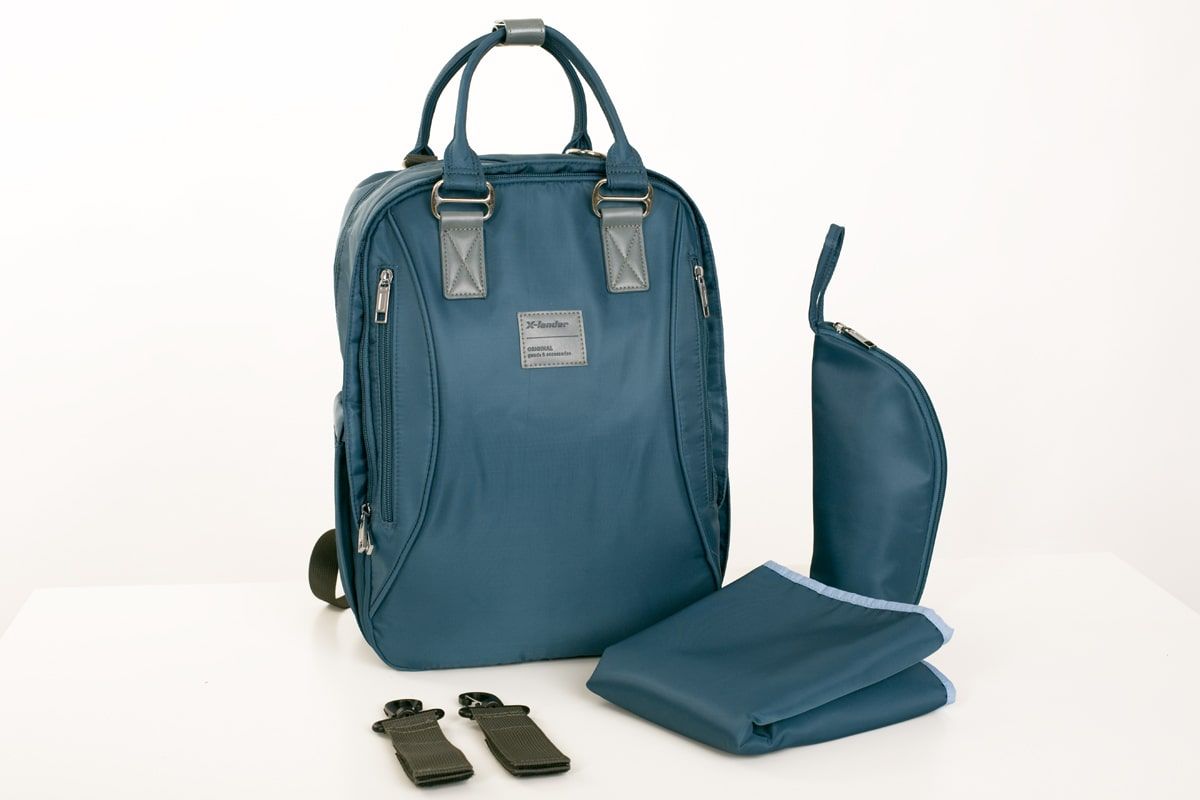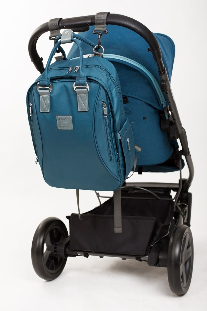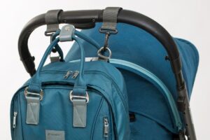 Łatwe zapięcie na wózku – specjalne zaczepy pozwalają zapiąć plecak na rączce. Stabilnie mocują go do wózka. Plecak można ściągać z rączki wózka, bez konieczności każdorazowego demontażu zapięcia. Dzięki uniwersalnemu zapięciu można zamocować go na prawie każdym wózku.