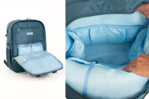 Łatwy w utrzymaniu czystości – wnętrze plecaka wykonane jest z tkaniny, którą łatwo można przetrzeć nawet mokrą chusteczką, bez konieczności prania całej torby.