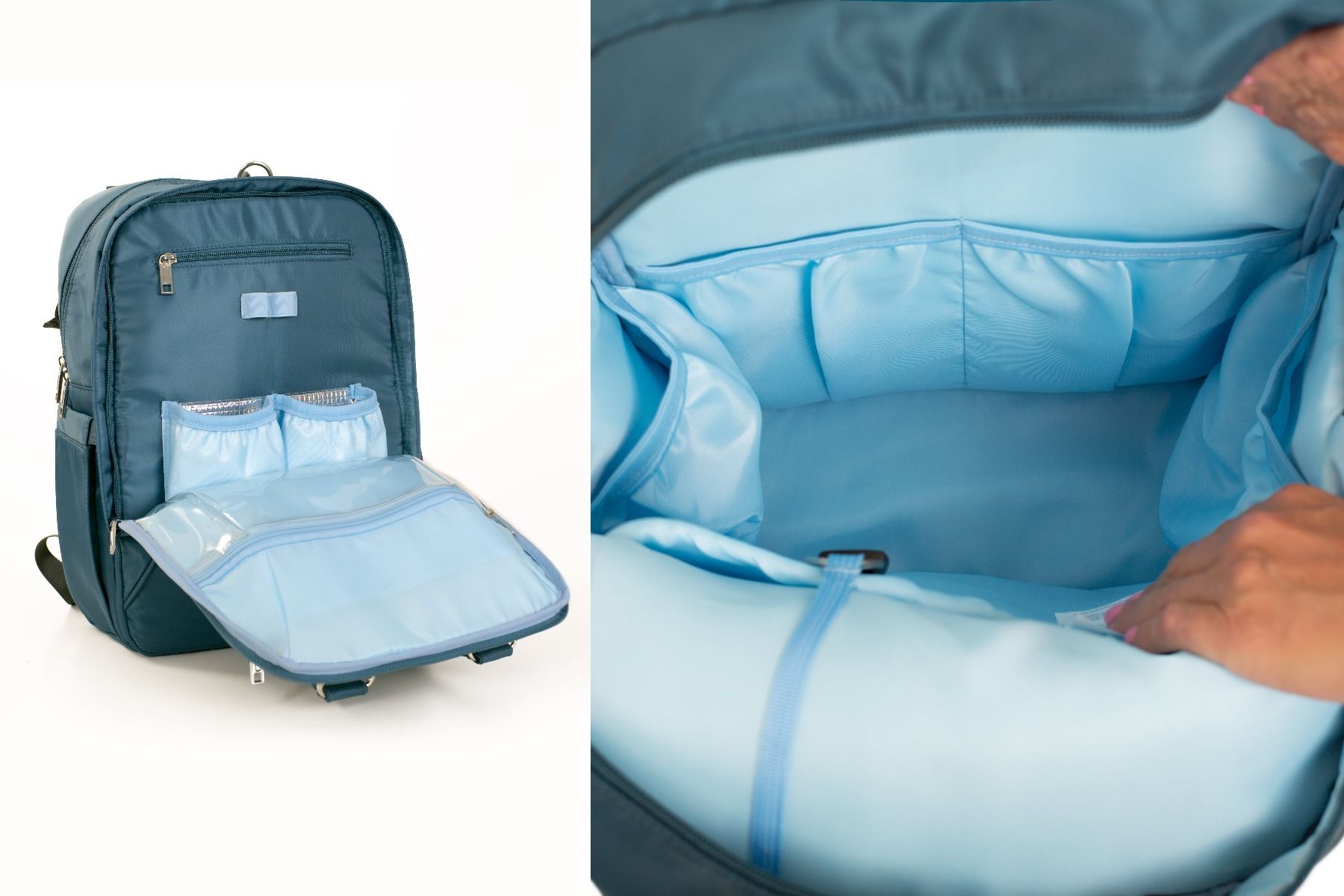 Bogate wyposażenie – wewnątrz plecaka znajduje się termiczne opakowanie na butelkę. Wyłożone jest folią utrzymującą temperaturę płynu w butelce. Niezbędny gadżet na spacery zimą, aby podać dziecku ciepłe picie, czy latem, aby butelka się nie nagrzewała. Drugim elementem jest rozkładany przewijak, dzięki któremu można przewinąć, czy położyć dziecko w publicznym miejscu z zachowaniem higienicznych warunków Twojemu maluszkowi.