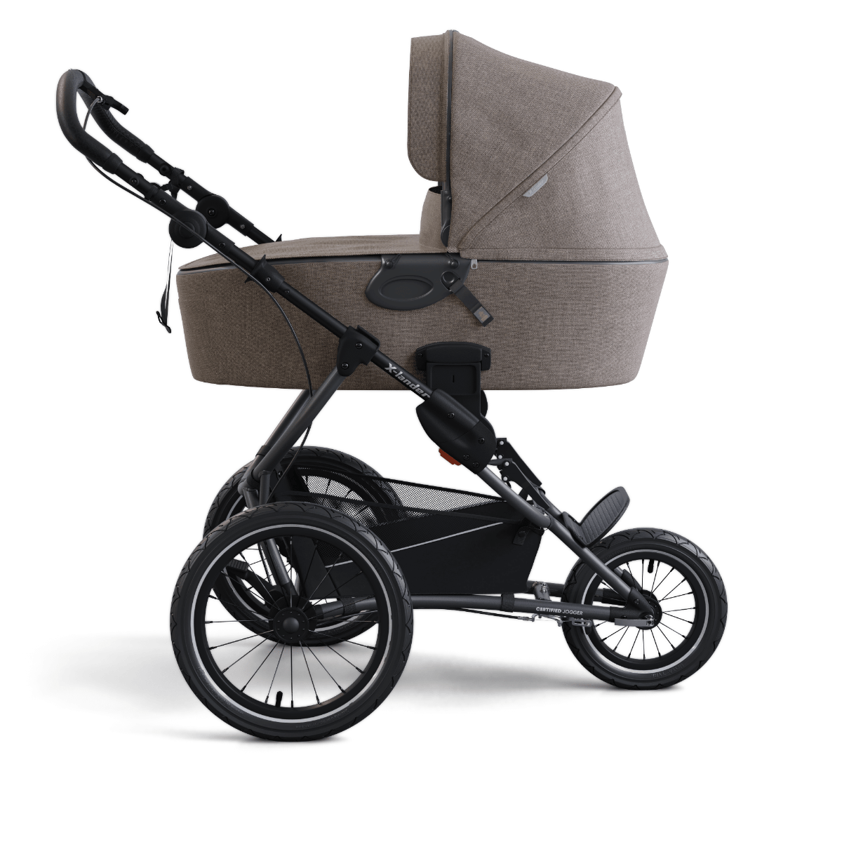 Czy wózek biegowy może być równocześnie wózkiem wielofunkcyjnym? Oczywiście, że może! Na ramę X-Run wepniesz gondolę X-Pram oraz fotelik samochodowy. Treningi z dzieckiem w wózku rekomendujemy od 6 miesiąca życia dziecka, ale X-Run świetnie sprawdzi się jako wózek codziennego użytku. Wózek łatwo się składa, jednym ruchem można odpiąć koła. Do tego jest bardzo lekki, mimo, pompowanych, dużych kół, waży jedynie 11,5kg. W codziennym użytkowaniu na pewno sprawdzi się duży kosz zakupowy. Ułatwieniem jest dodatkowy zamek, pomaga dostać się do zawartości kosza z każdej strony. Diabeł tkwi też w szczegółach! Niezastąpionym gadżetem jest moskitiera zamontowana w podnóżku siedziska. Sprawdzi się na spacerze ale szczególnie jest przydatna podczas treningów w parku czy poza miastem.