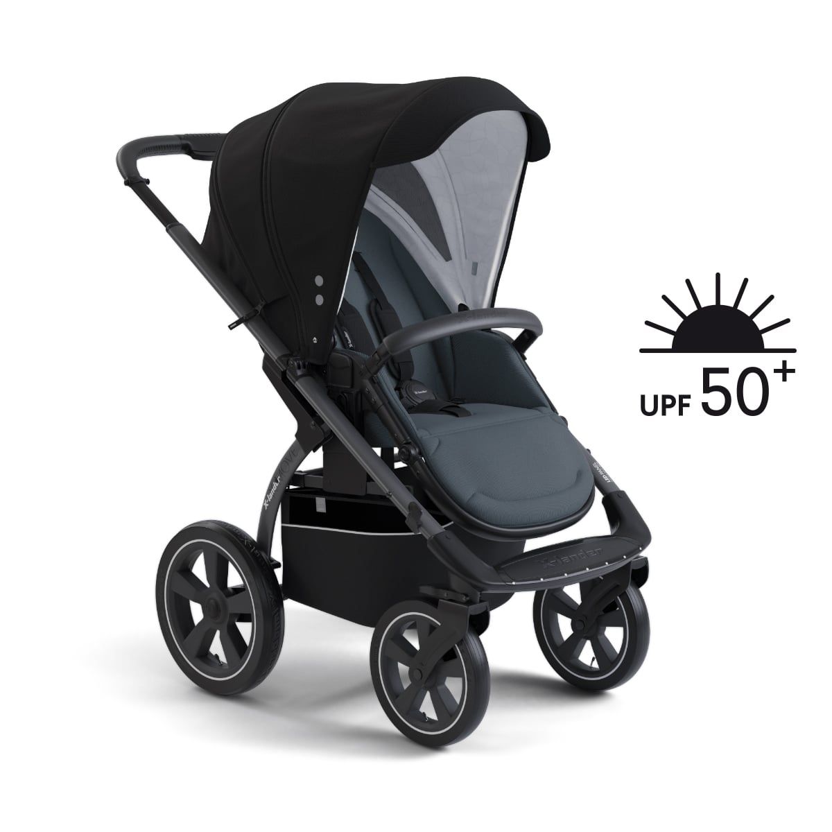 Jednym z założeń przy projektowaniu wózków, jest najwyższa dbałość o bezpieczeństwo i zdrowie dzieci. Wszystkie tkaniny w wózkach posiadają najwyższy protektor przepuszczalności promieni słonecznych UV50. Dzięki takiemu zabezpieczeniu, szkodliwe, silne promieniowanie nie dostaje się do wnętrza gondoli, czy do osłoniętej części siedziska. Rozsuwana budka UV50, prawie w całości osłania siedzące w spacerówce dziecko dbając o jego zdrowie i chroniąc przed szkodliwymi czynnikami zewnętrznymi.