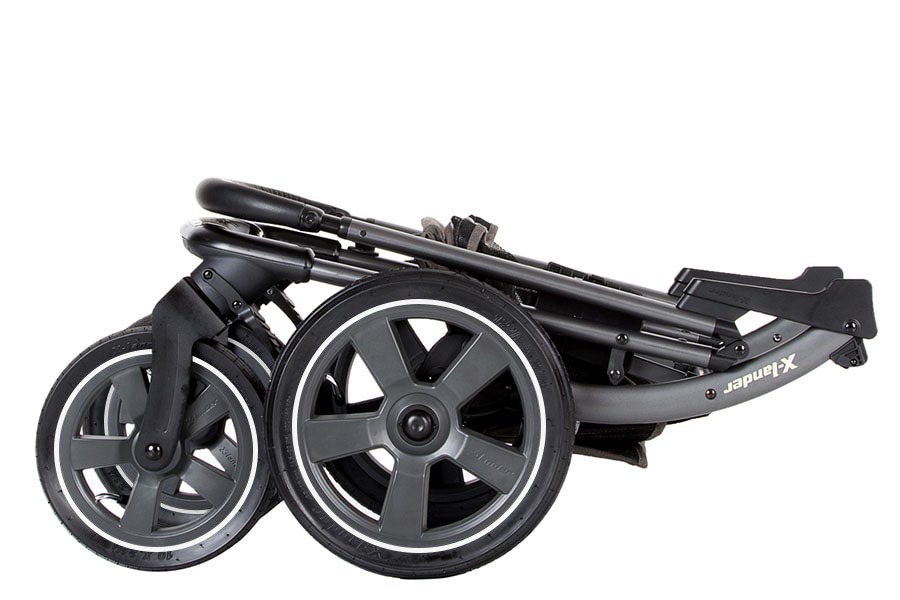Mimo że X-Move jest sporym wózkiem, składa się go lekko. Każdy z elementów wpina i wypina się jednym naciśnięciem guzika. Zaprojektowaliśmy je w taki sposób, aby działo się to bez użycia siły oraz samoczynnie. Podobnie koła, które można wypiąć za pomocą jednego przycisku. Również jedno pociągnięcie ręką wystarczy, aby rozłożyć ramę wózka.