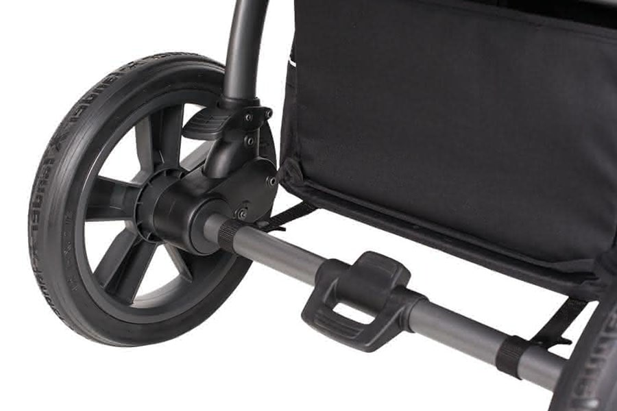 Dzięki systemowi quick release koła ściągają się jednym naciśnięciem guzika, a rama składa się jednym ruchem ręki. I nagle z pokaźnego wózka otrzymujesz zgrabny model, łatwy do przenoszenia i łatwy do spakowania w niewielkim samochodowym bagażniku. To zasługa lekkiego stelaża wykonanego z wysokiej jakości aluminium.