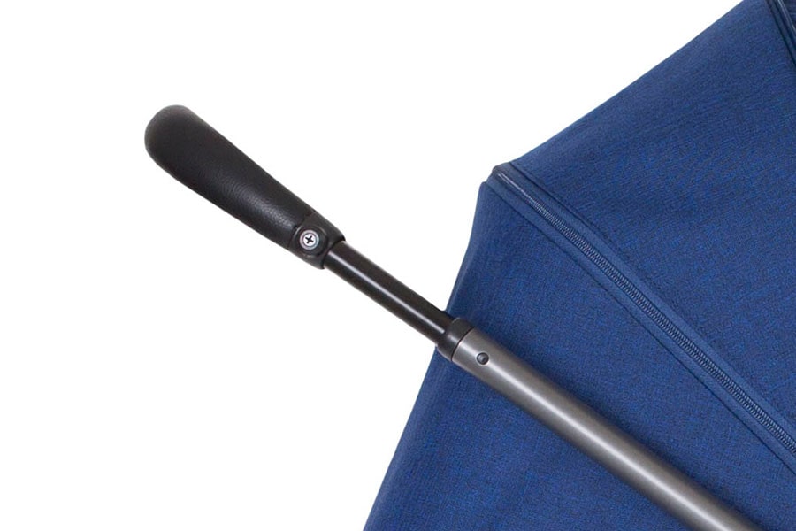 Regulowana rączka wózka to konieczność, aby prowadziło się go wygodnie. Można ją dostosować do siebie i swojego wzrostu jednym ruchem ręki, przez naciśnięcie guzika. Rączkę wykonaliśmy z ekoskóry, aby nie tylko zapewniała miły w dotyku oraz mocny uchwyt, ale przede wszystkim była łatwa do utrzymania w czystości i trwała.