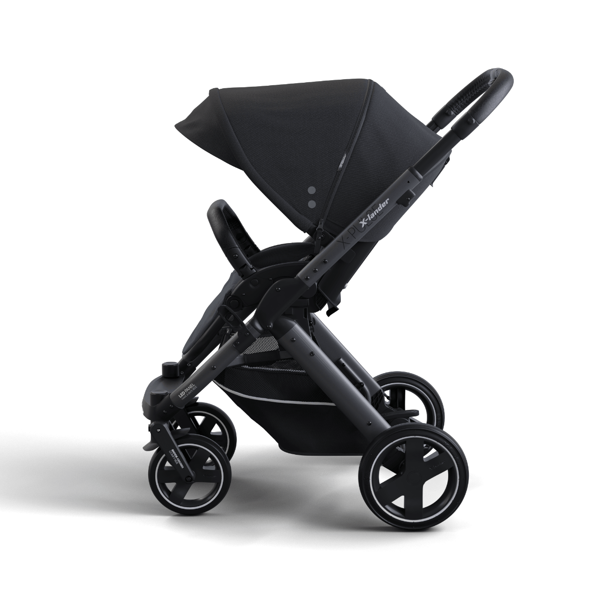 X-Pulse, jak wszystkie wózki X-lander posiada panel LED w podnóżku. To innowacyjne rozwiązanie w wózkach, zwiększa wielokrotnie widoczność wózka po zmroku. Szczególnie w okresie jesienno-zimowym, kiedy zmrok zapada około godziny 16.
