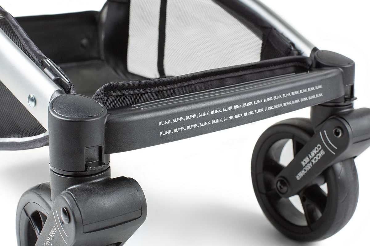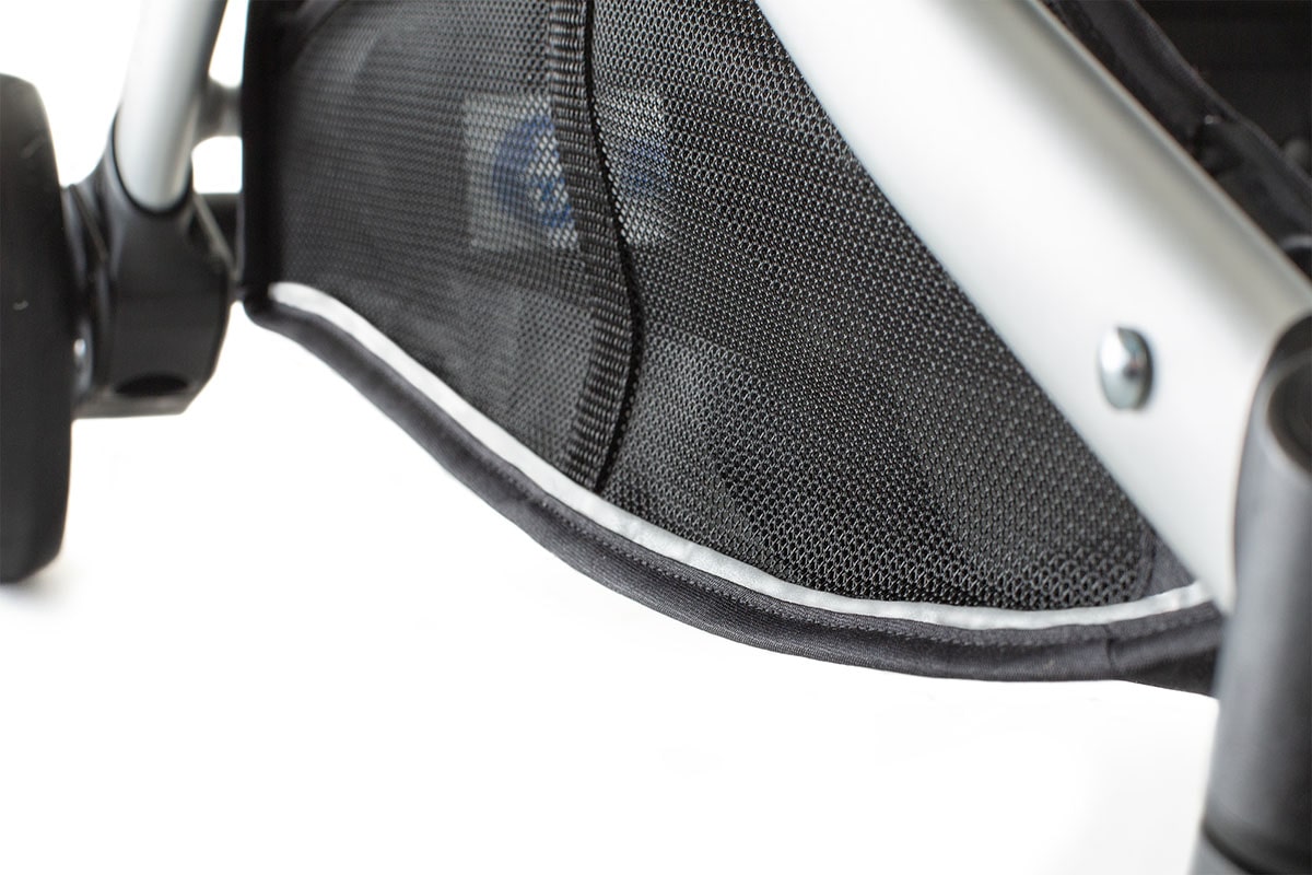 Na podnóżku wózka, nadrukowaliśmy dodatkowy odblask dla jeszcze lepszej widoczności. Wygląda bardzo nowocześnie, i co najważniejsze zwiększa widoczność wózka. Teraz dzięki odblaskom na budce, i na podnóżku, wózek jest widoczny na wprost oraz z każdej ze stron.