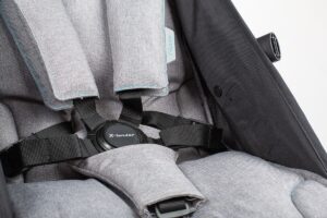 To system zapinania pasów klamrą wyprowadzonych aż z pięciu miejsc. Dzięki temu zapięciu nie ma szans, aby dziecko samo mogło się z niego wyswobodzić lub wypaść. W pełni więc gwarantują mu stabilność oraz zabezpieczenie, także przy różnej prędkości jazdy i różnym podłożu. Pasy można przekładać w siedzisku na dwóch wysokościach, dostosowując je do wzrostu i rozmiarów malucha. Posiadają osłonki chroniące jego ciało przed uciskiem, co oprócz bezpieczeństwa daje mu również ogromną wygodę.