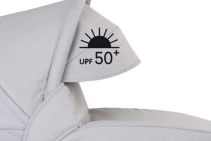 Jednym z założeń przy projektowaniu wózków, jest najwyższa dbałość o bezpieczeństwo i zdrowie dzieci. Wszystkie tkaniny w wózkach posiadają najwyższy protektor przepuszczalności promieni słonecznych UV50. Dzięki takiemu zabezpieczeniu, szkodliwe, silne promieniowanie nie dostaje się do wnętrza gondoli, czy do osłoniętej części siedziska. Rozsuwana budka UV50, prawie w całości osłania siedzące w spacerówce dziecko dbając o jego zdrowie i chroniąc przed szkodliwymi czynnikami zewnętrznymi.