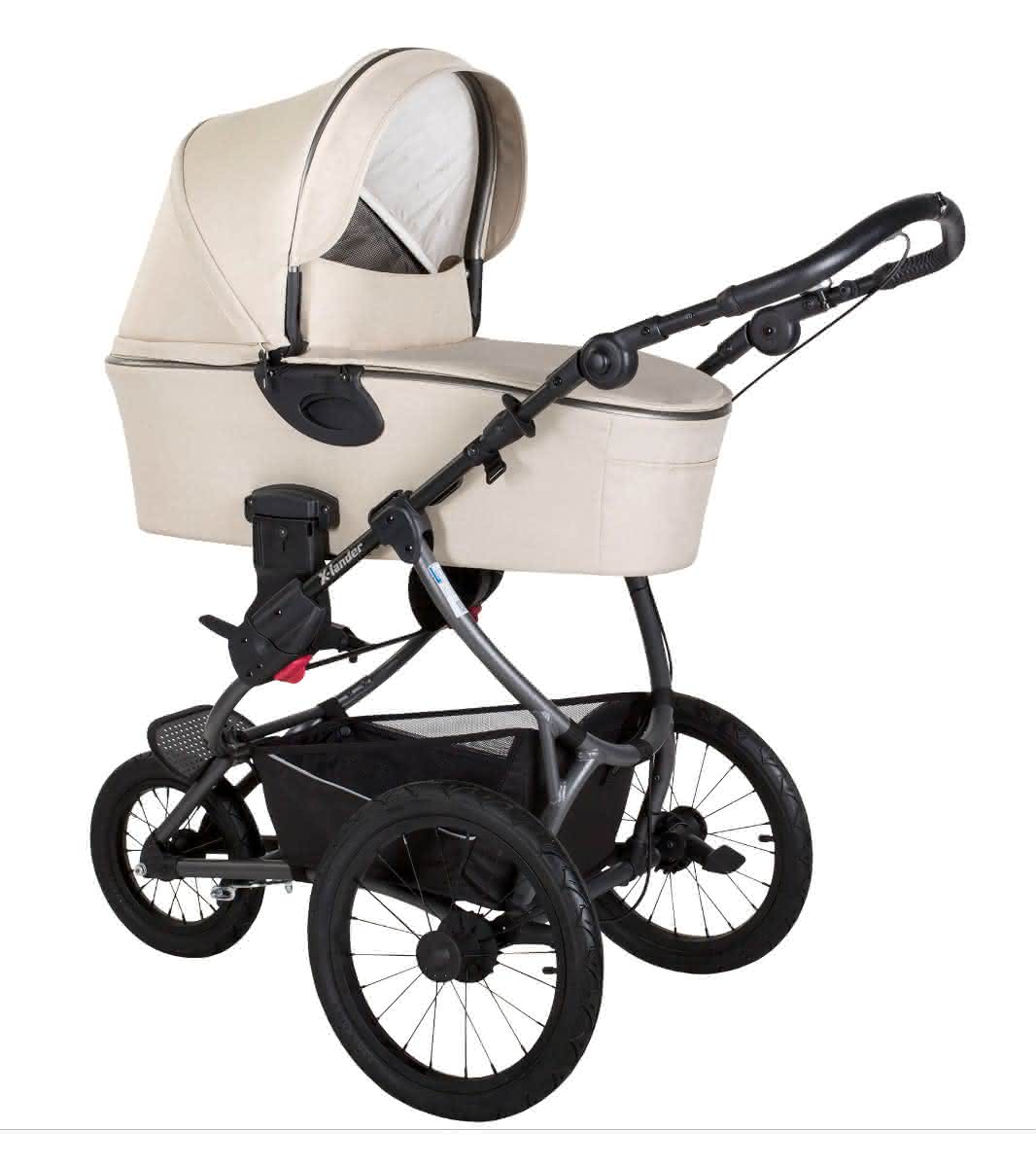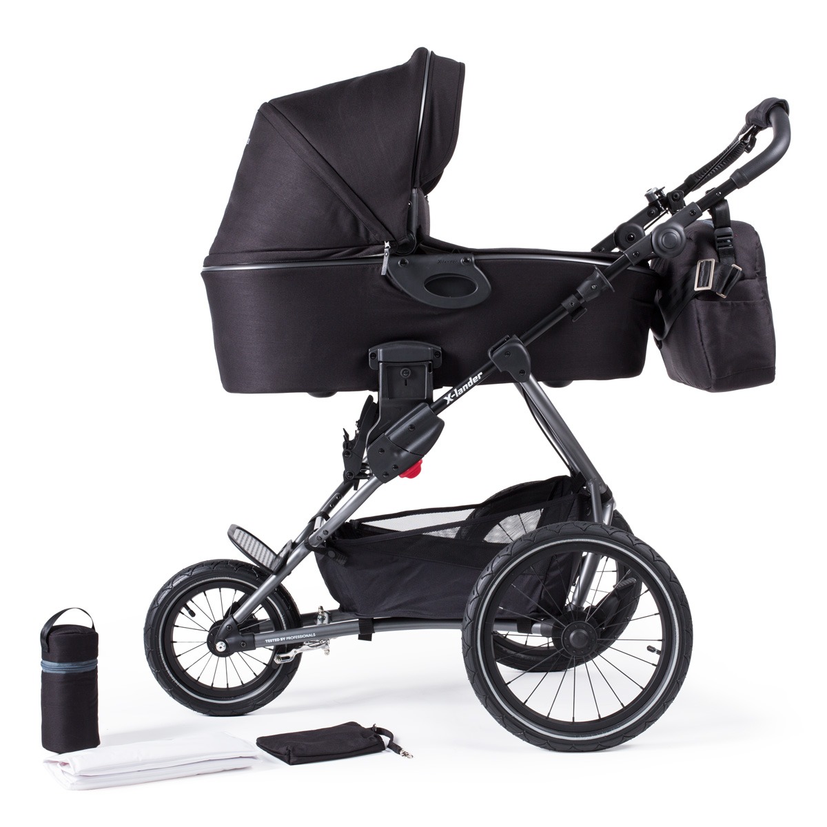 Czy wózek biegowy może być równocześnie wózkiem wielofunkcyjnym? Oczywiście, że może! Na ramę X-Run wepniesz gondolę X-Pram oraz fotelik samochodowy. Treningi z dzieckiem w wózku rekomendujemy od 6 miesiąca życia dziecka, ale X-Run świetnie sprawdzi się jako wózek codziennego użytku. Wózek łatwo się składa, jednym ruchem można odpiąć koła. Do tego jest bardzo lekki, mimo, pompowanych, dużych kół, waży jedynie 11,5kg. W codziennym użytkowaniu na pewno sprawdzi się duży kosz zakupowy. Ułatwieniem jest dodatkowy zamek, pomaga dostać się do zawartości kosza z każdej strony. Diabeł tkwi też w szczegółach! Niezastąpionym gadżetem jest moskitiera zamontowana w podnóżku siedziska. Sprawdzi się na spacerze ale szczególnie jest przydatna podczas treningów w parku czy poza miastem.