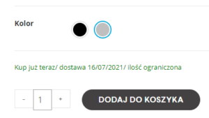 Kupując produkt z datą dostawy – gwarantujemy wysyłkę, zaraz po jej wejściu towaru do magazynu. W terminie wskazanym w trakcie składania zamówienia.